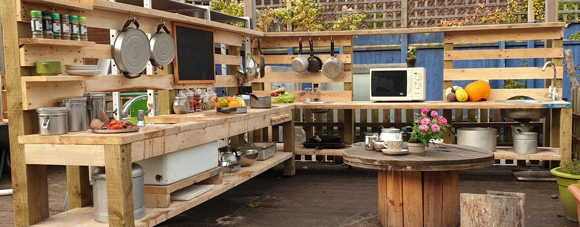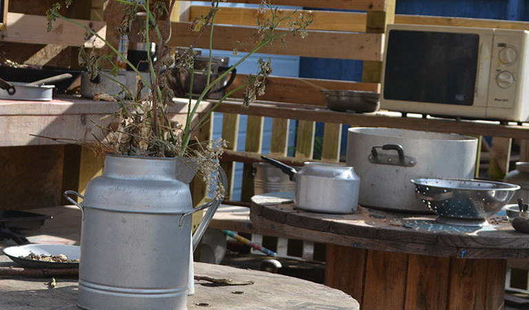 The nature kitchen is where children can mix up delicious dishes or make magical potions often using plants and flowers we have grown ourselves. The children practice important social interactions including co-operation, negotiation, communication and sharing as they work together in the kitchen creating flower perfume or perfecting a mud pie.